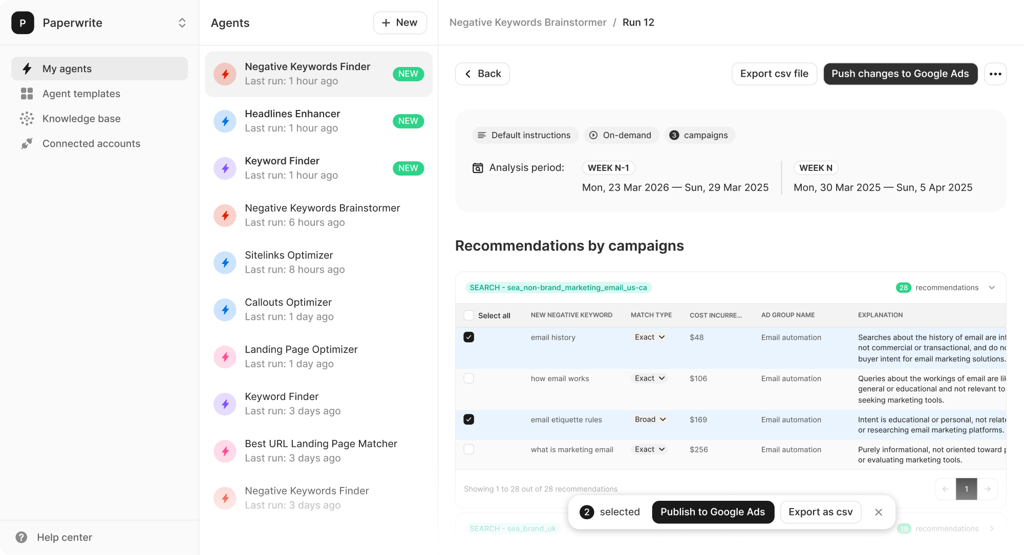 Behind the scenes, Blobr runs a team of AI agents trained on the best practices of top Google Ads experts.